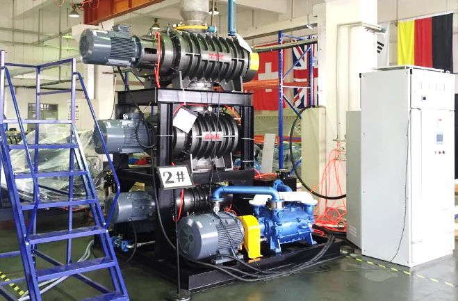 2、羅茨真空機組的工作壓力應該滿足真空設備的真空及工作壓力要求。如:某真空干燥工藝要求10mmHg(絕壓)的工作壓力,選用的真空泵的壓力至少要2mmHg,能低于1mmHg。通常選擇泵的壓力要高于真空設備工作壓力半個到一個數量級。